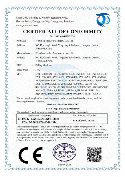 • China Chengdu Bropak Machinery Equipment Co., Ltd. Certifications